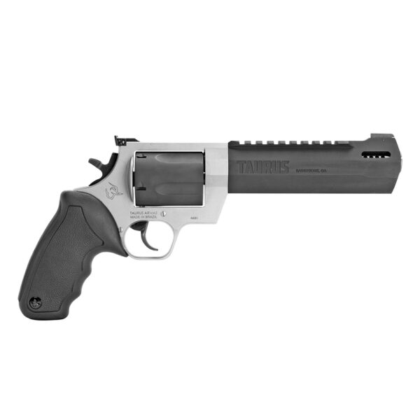Winner of the 2019 American Hunter Handgun of the Year Golden Bullseye Award, the Taurus Raging Hunter is a next-generation, big-bore revolver that’s first in innovation-and built to last. A fun and effective alternative for short- to medium-range hunting scenarios, this five-shot revolver is chambered in 460 S&W Magnum and is available in Matte Black or Two Tone finish. Its revolutionary angular barrel design cuts down on overall weight, while its factory tuned porting and gas expansion chamber reduces muzzle lift for quicker target acquisition. Cushioned insert grips ensure a comfortable, controllable shooting experience.